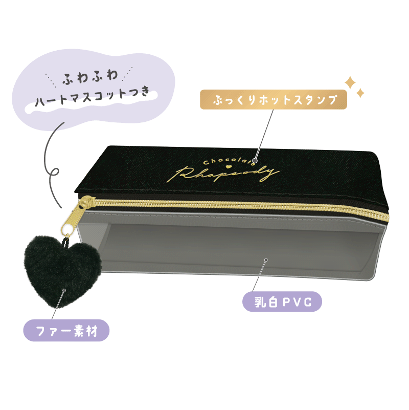 ファスナースラスにふわふわハートマスコットがついてかわいい!