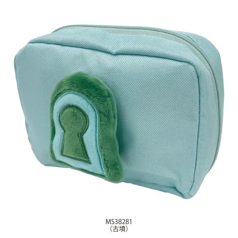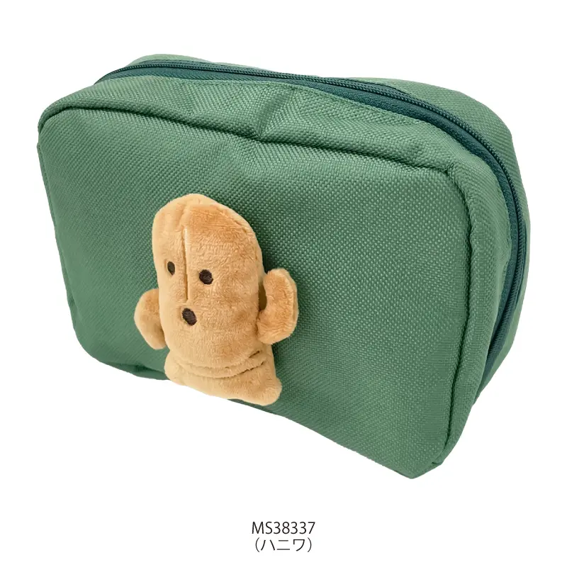 ぬいぐるみマスコットが本体に縫い付けられている、見た目も楽しいデザインのポーチです