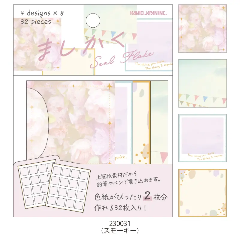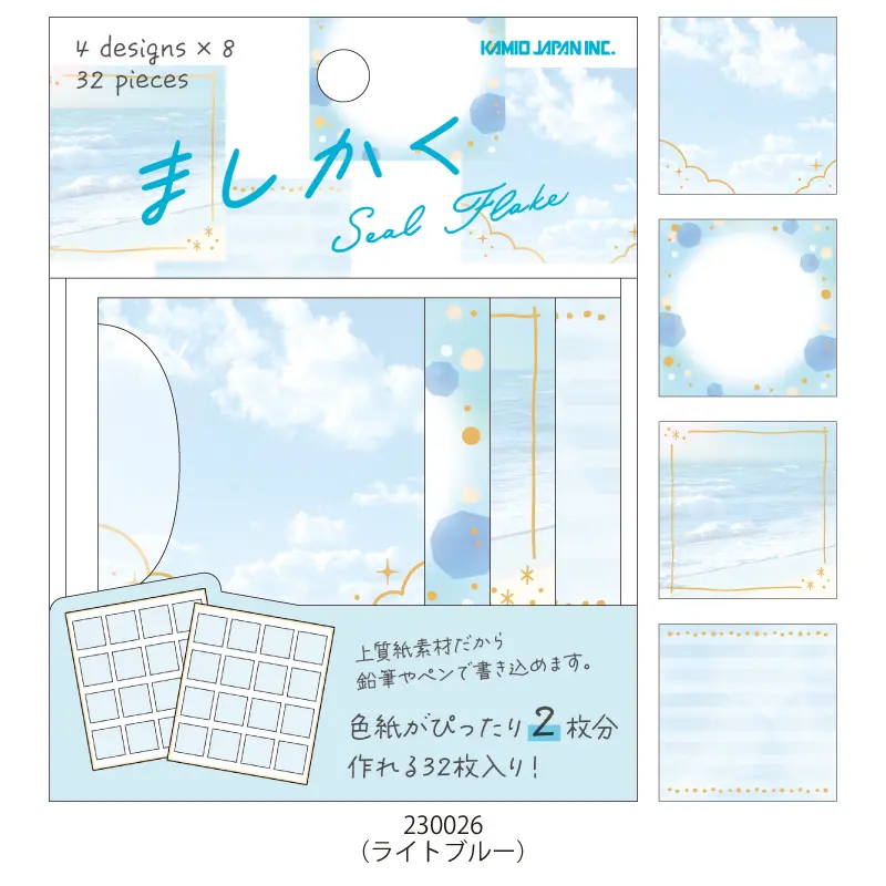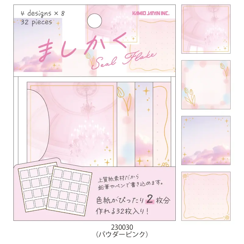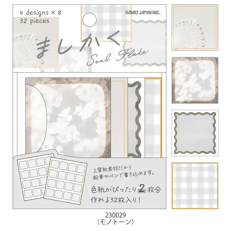 色紙や手帳デコにぴったりなましかくのフレークタイプのシール。